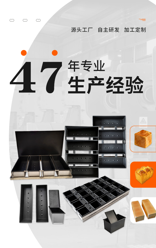 主要產(chǎn)品:鋁合金一體成型蛋糕模具,冷軋板沖壓不粘蛋糕、面包模具,鍍鋁板不粘蛋糕、面包模具,不銹鋼烤盤模具,各種規(guī)格吐司、法棍、漢堡、平盤產(chǎn)品,以及多類型食品機(jī)械等。為更精準(zhǔn)地滿足市場(chǎng)需求,企業(yè)依托自身優(yōu)勢(shì),為廣大合作伙伴提供產(chǎn)品個(gè)性化訂制服務(wù)。
